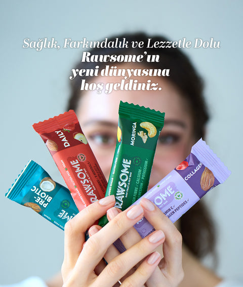 Rawsome, iyi yaşamın küçük anlarda başladığına inanır. Temiz içeriklerle, sade tariflerle ve doğala yakın bir anlayışla hayatın ritmine eşlik eder. Bu yolculuğun bir parçası olduğun için mutluyuz. Her ısırıkta daha iyi hissetmen için buradayız. İyi ki varsın, iyi ki Rawsome’lasın.Bitkisel proteinle uzun süre tok tutan güçlü atıştırmalıklar.